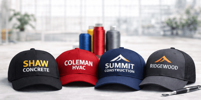 Professional embroidered hats, polos, jackets and uniforms designed to elevate your brand.